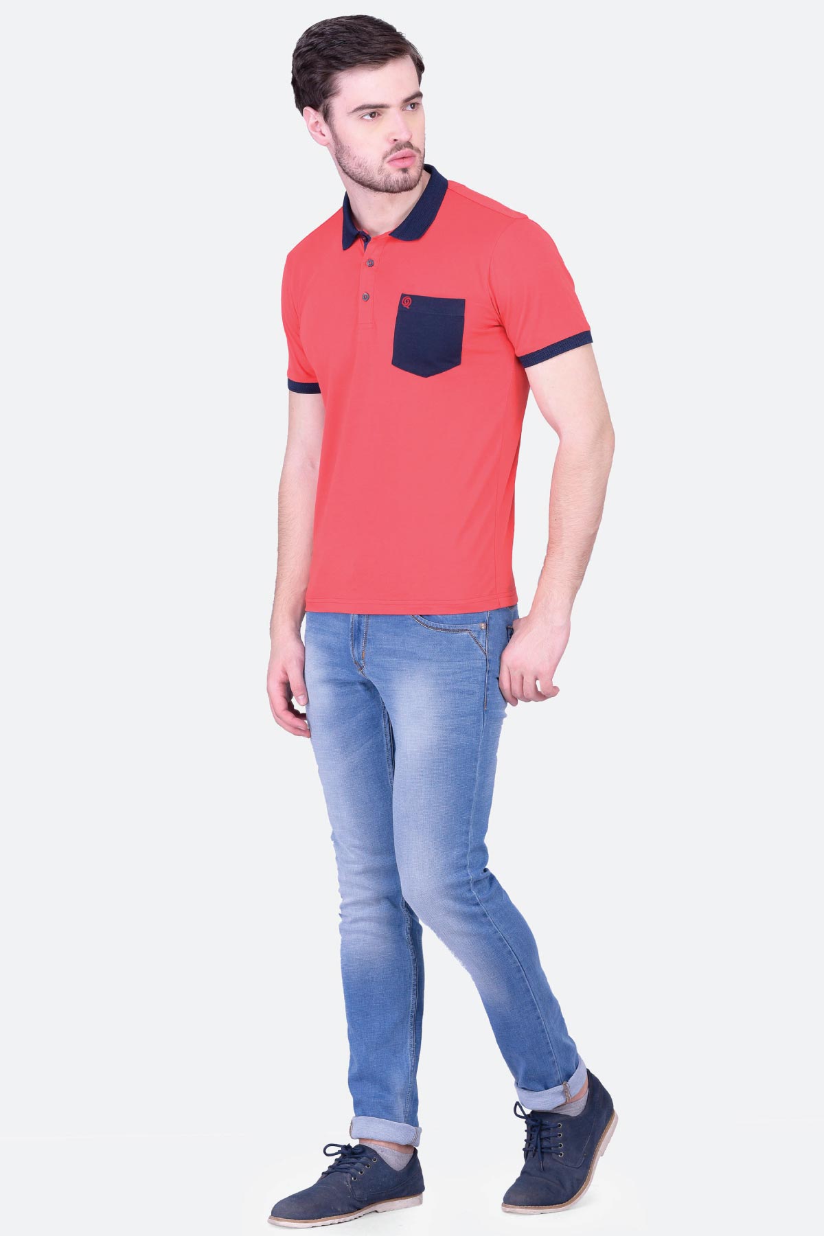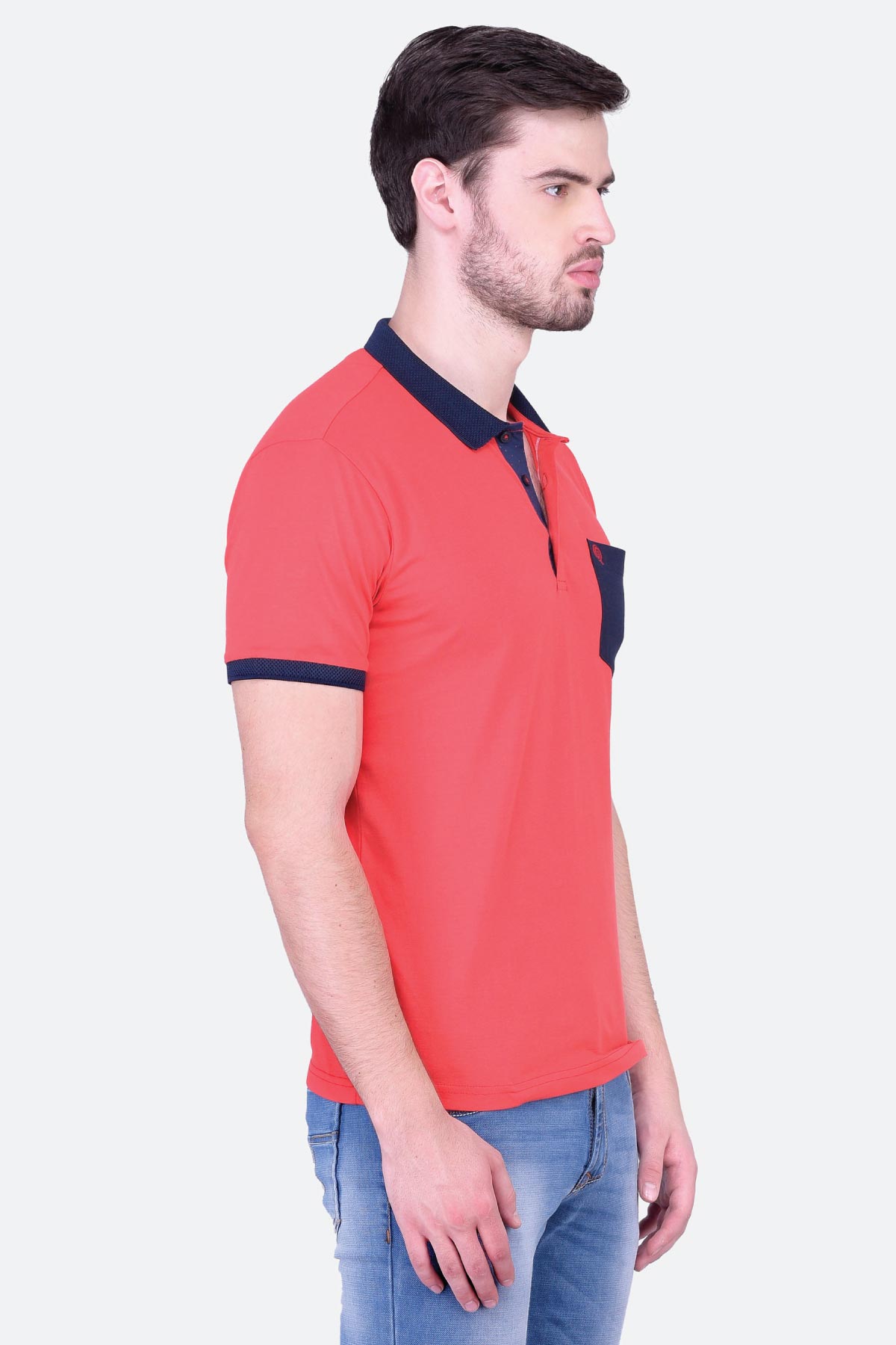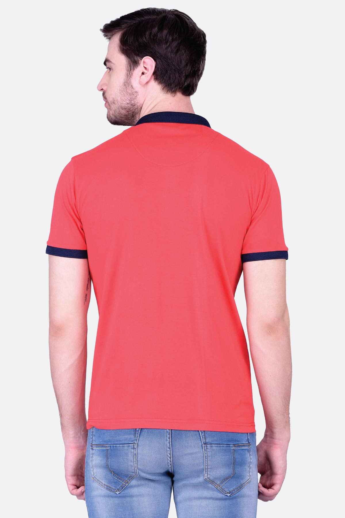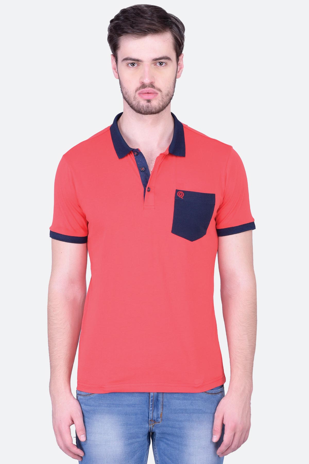 Don a casual look in this red cotton jersey polo T-shirt for men. Made from cotton in a regular fit, this design features a contrast collar, cuffs, inner placket and chest pocket. Style it with your favourite denim and you are sorted!