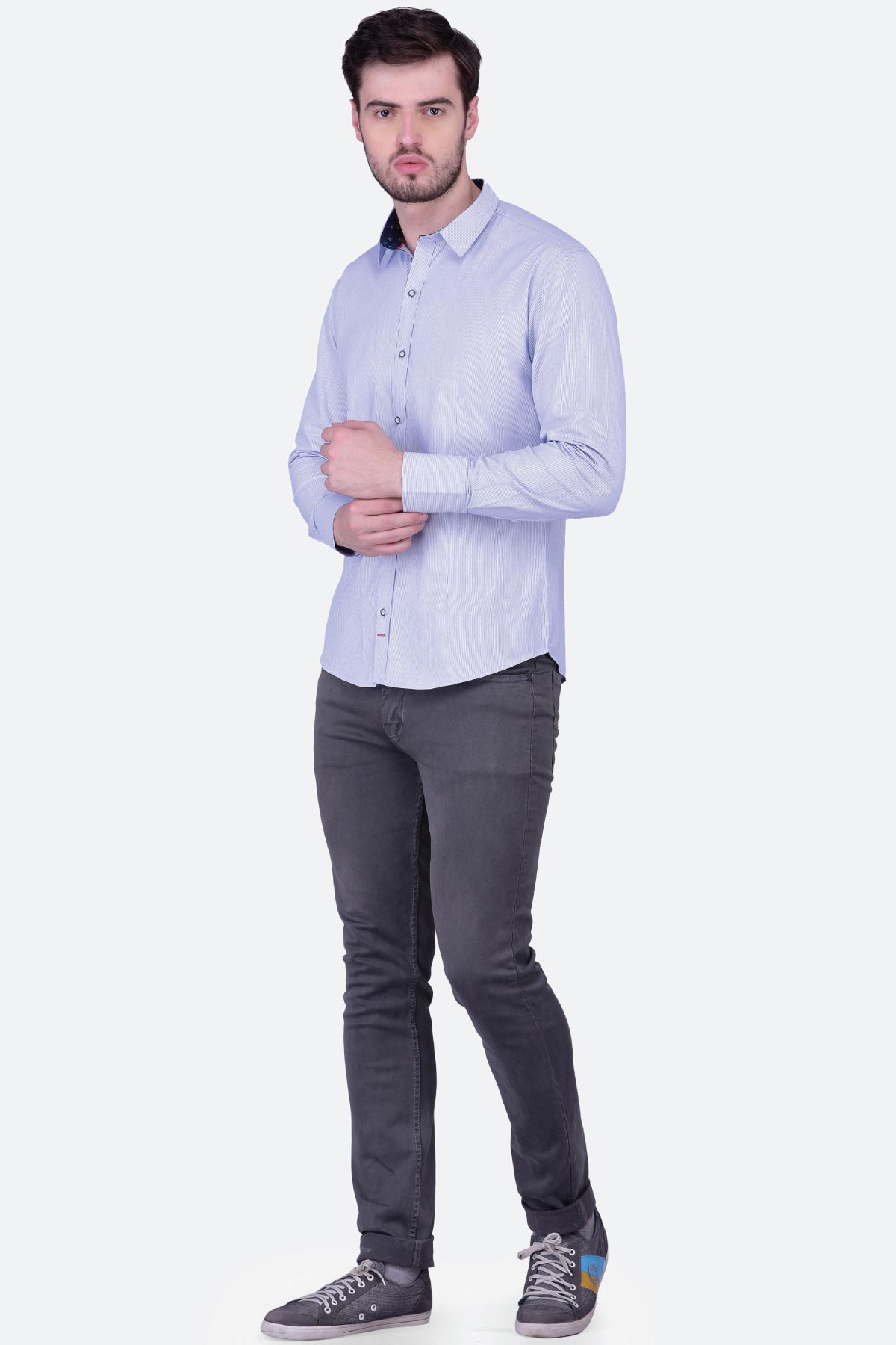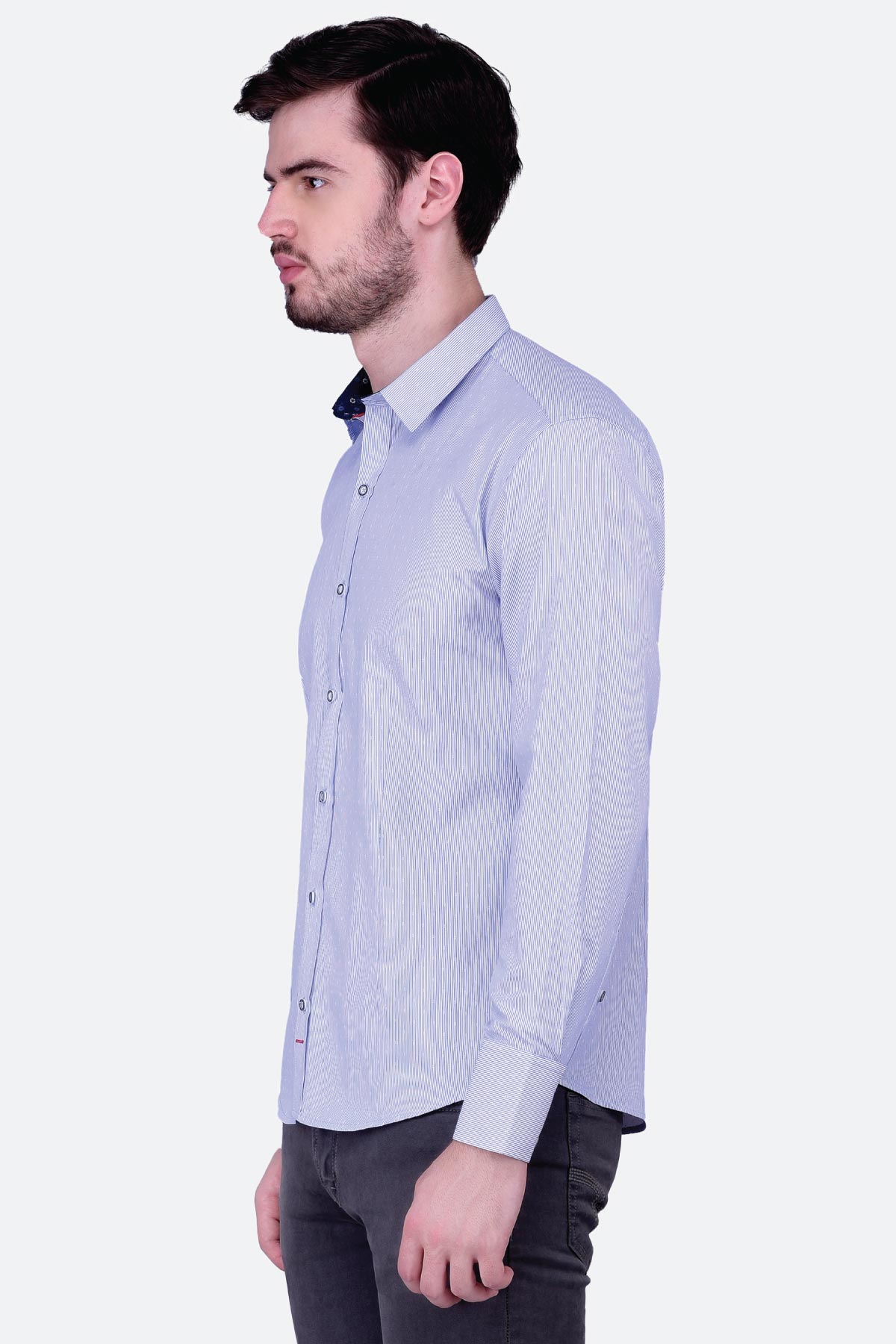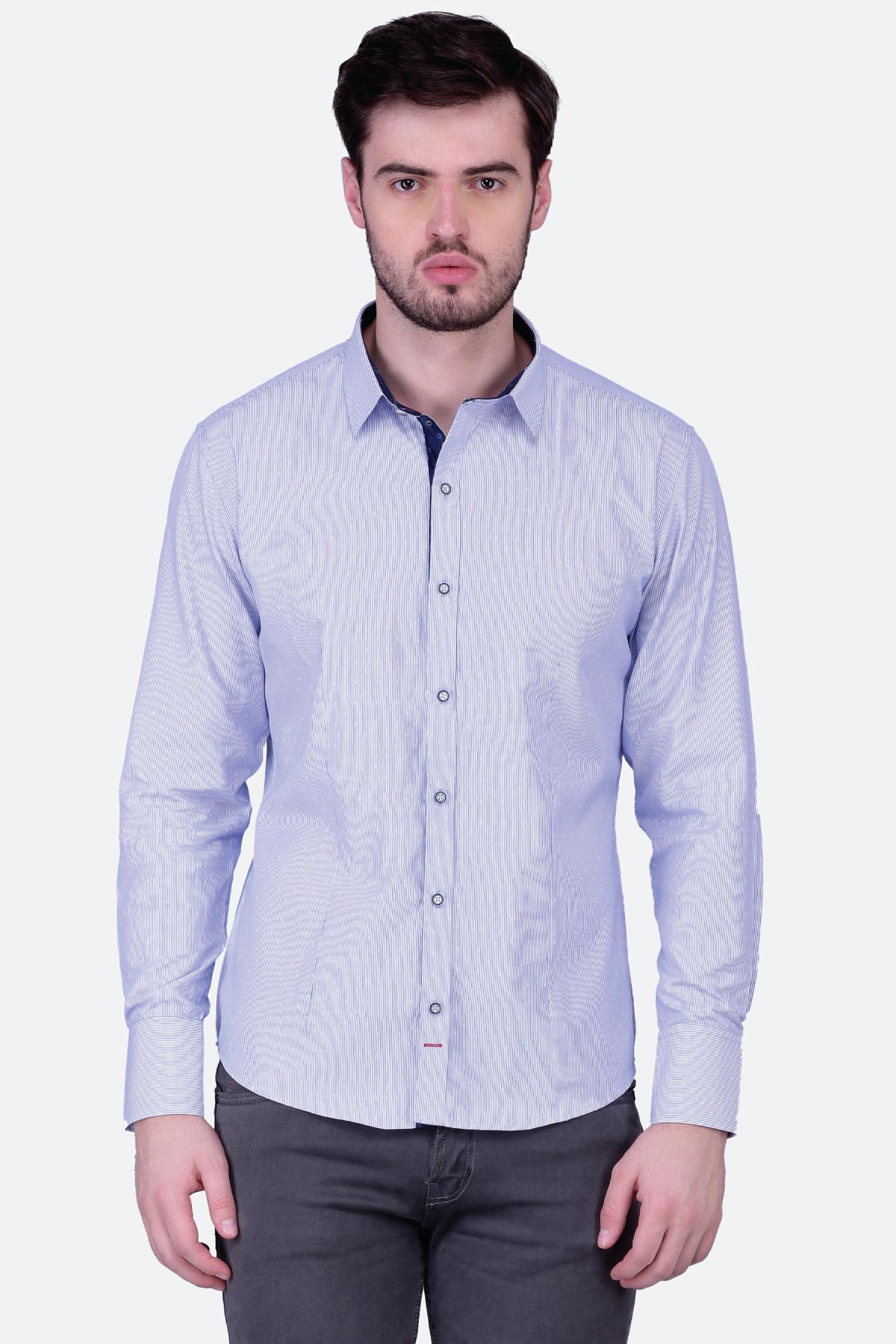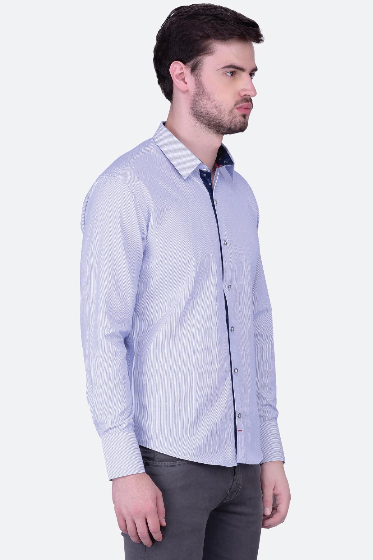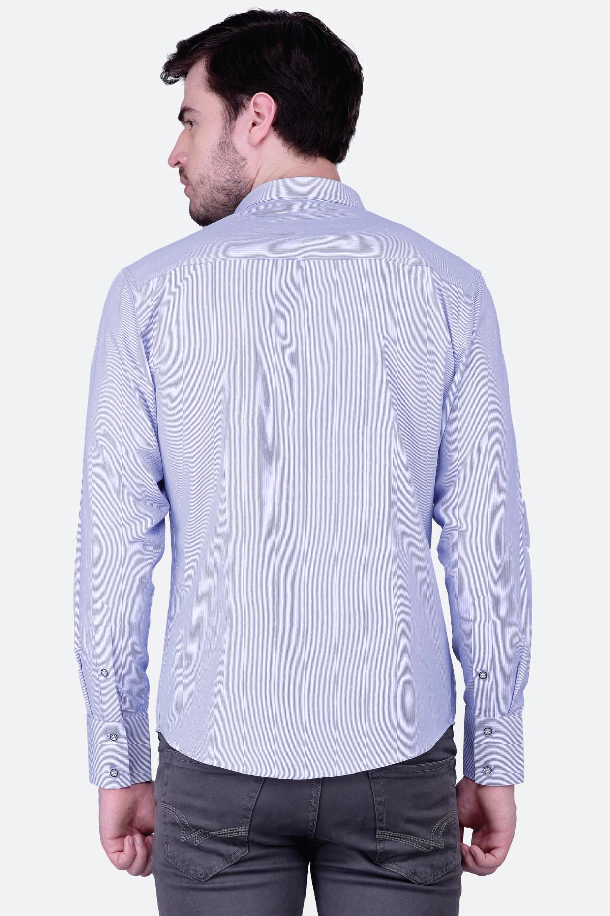 This fine quality jacquard striped shirt for men is a must-have. Tailored in a regular fit from blended fabric, this design will give you an elegant look. Club it with a pair of black trousers and monk-strap shoes to ace a formal look