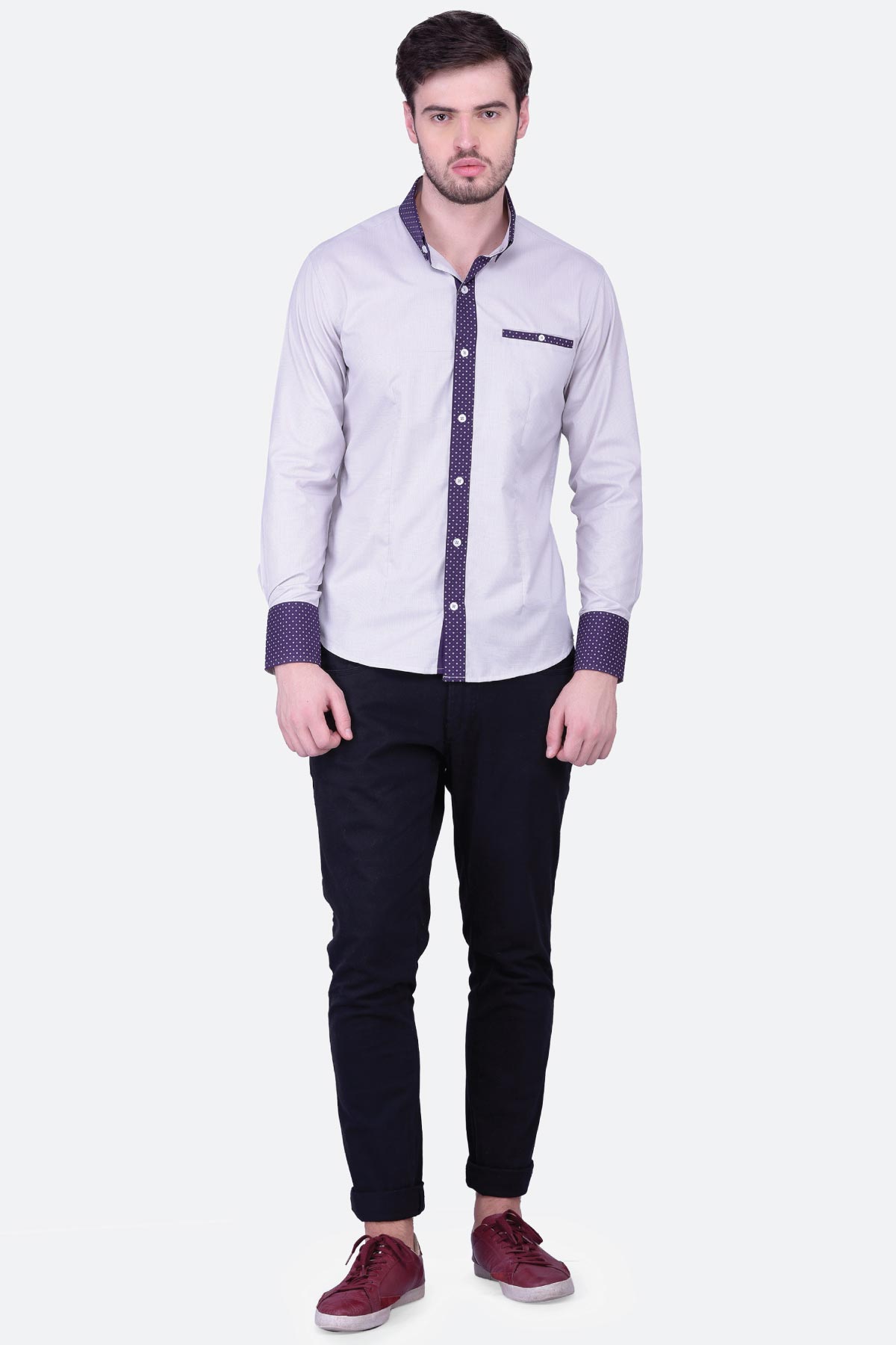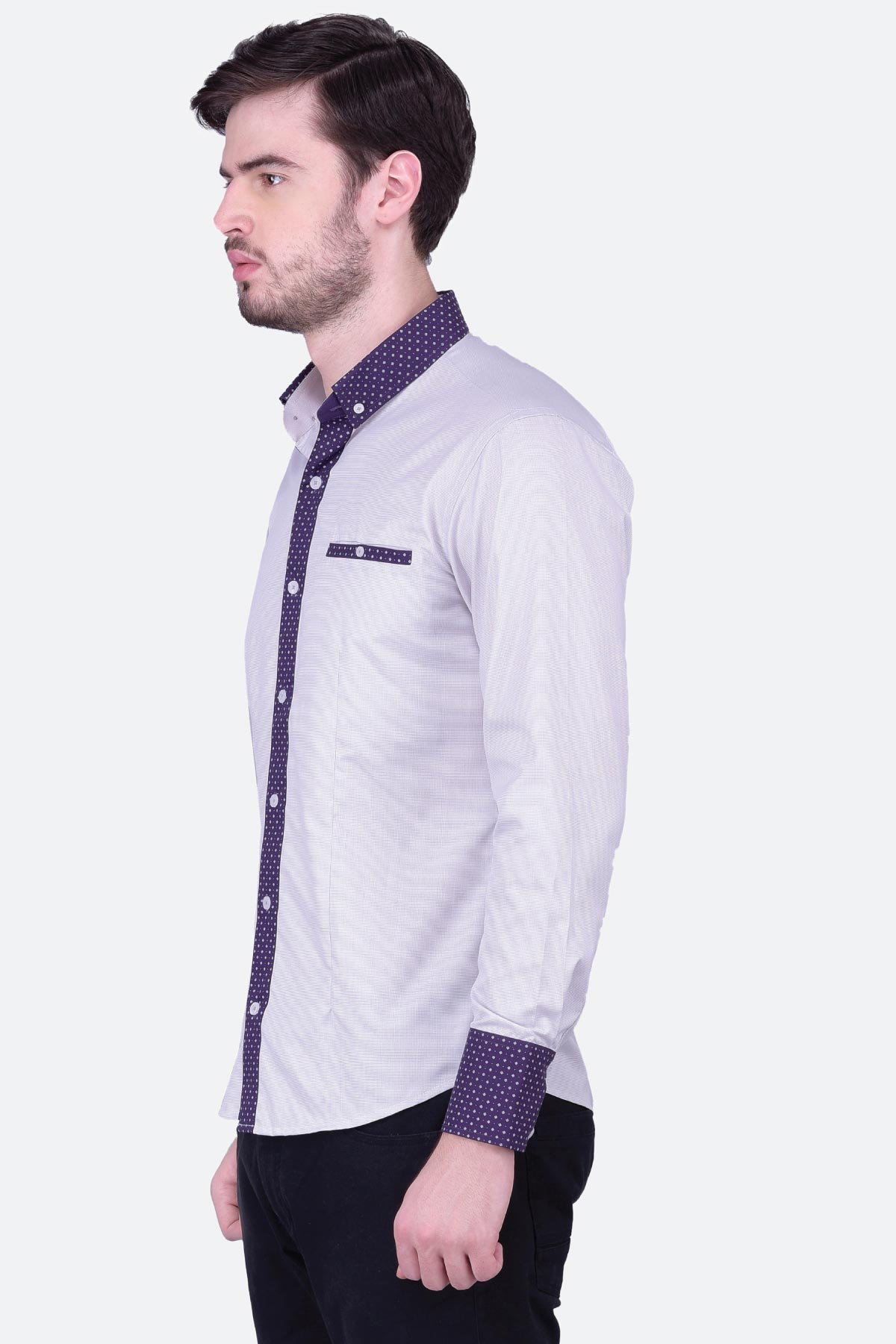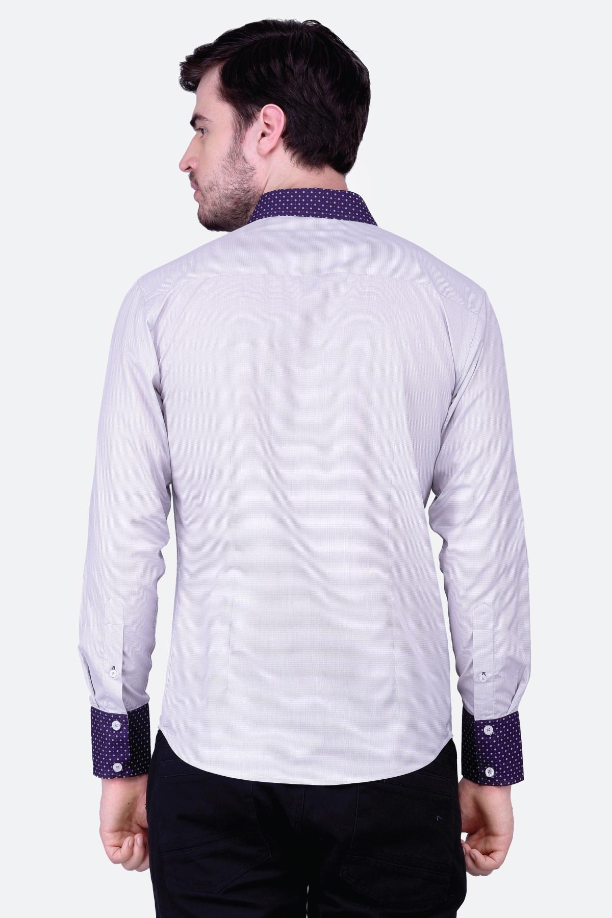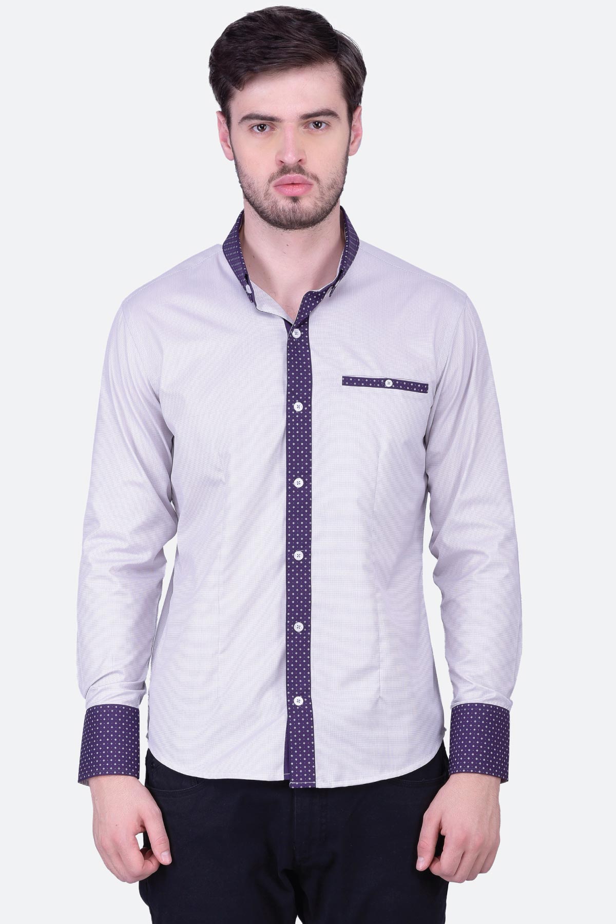 Bold and stylish, this grey micro gingham shirt for men will give you a sophisticated look. The blended fabric has been crafted for a regular fit with a contrast collar, placket, cuffs and pocket. Work it with chinos and boat shoes for a classic appeal