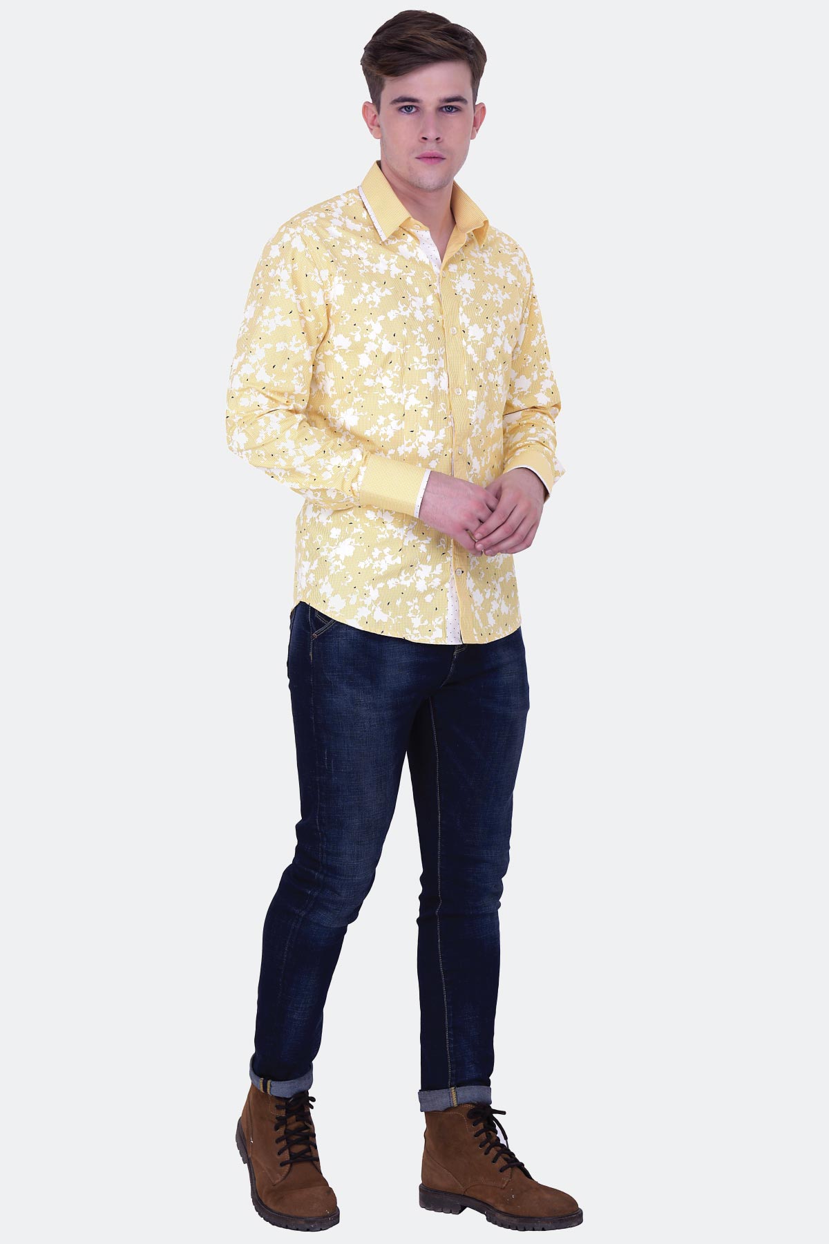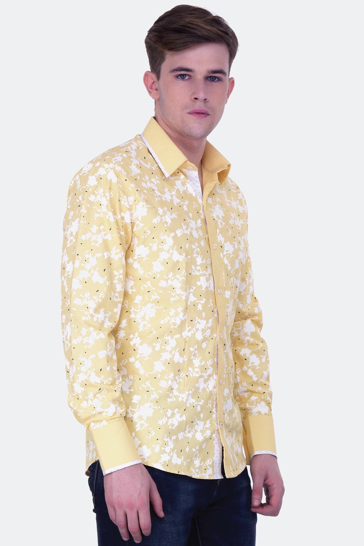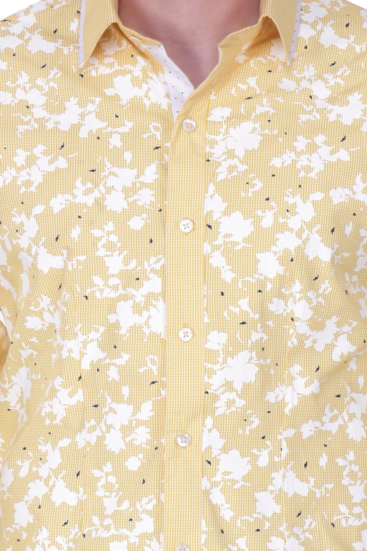 This yellow printed shirt will make a versatile yet trendy addition to your casual wardrobe. Designed from a blended fabric, this piece features a contrast inner placket and gingham cuffs and collar with contrast edging. Wear it with chinos and boat shoes for added suave.